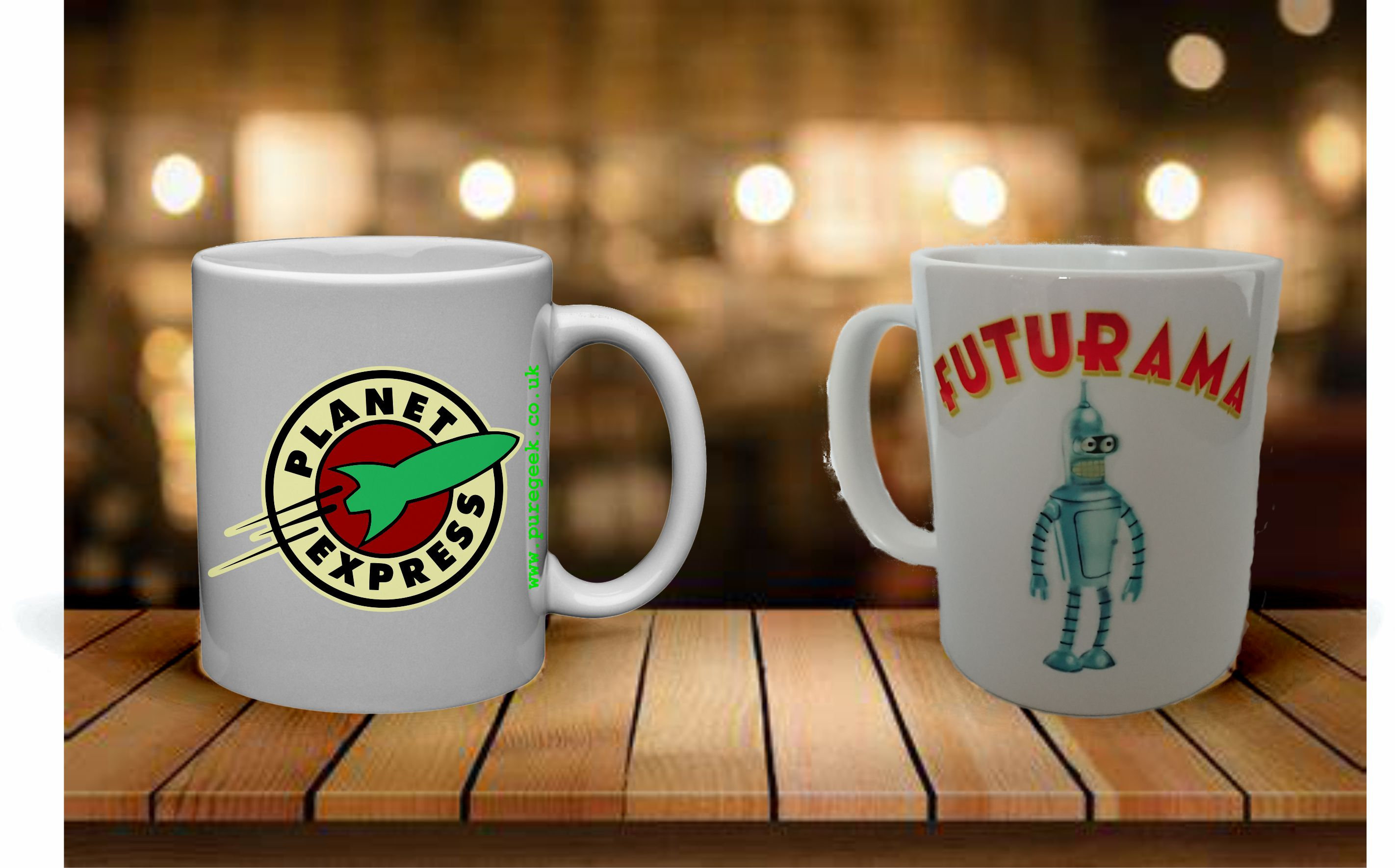 Are you a fan of Futurama? Then you will love this mug that features a bespoke drawing by Eafy of Bender that fabulously acerbic robot. This unique drawing has been created by a very talented artist and Bender features on one side of the mug with the Planet Express logo on the other.