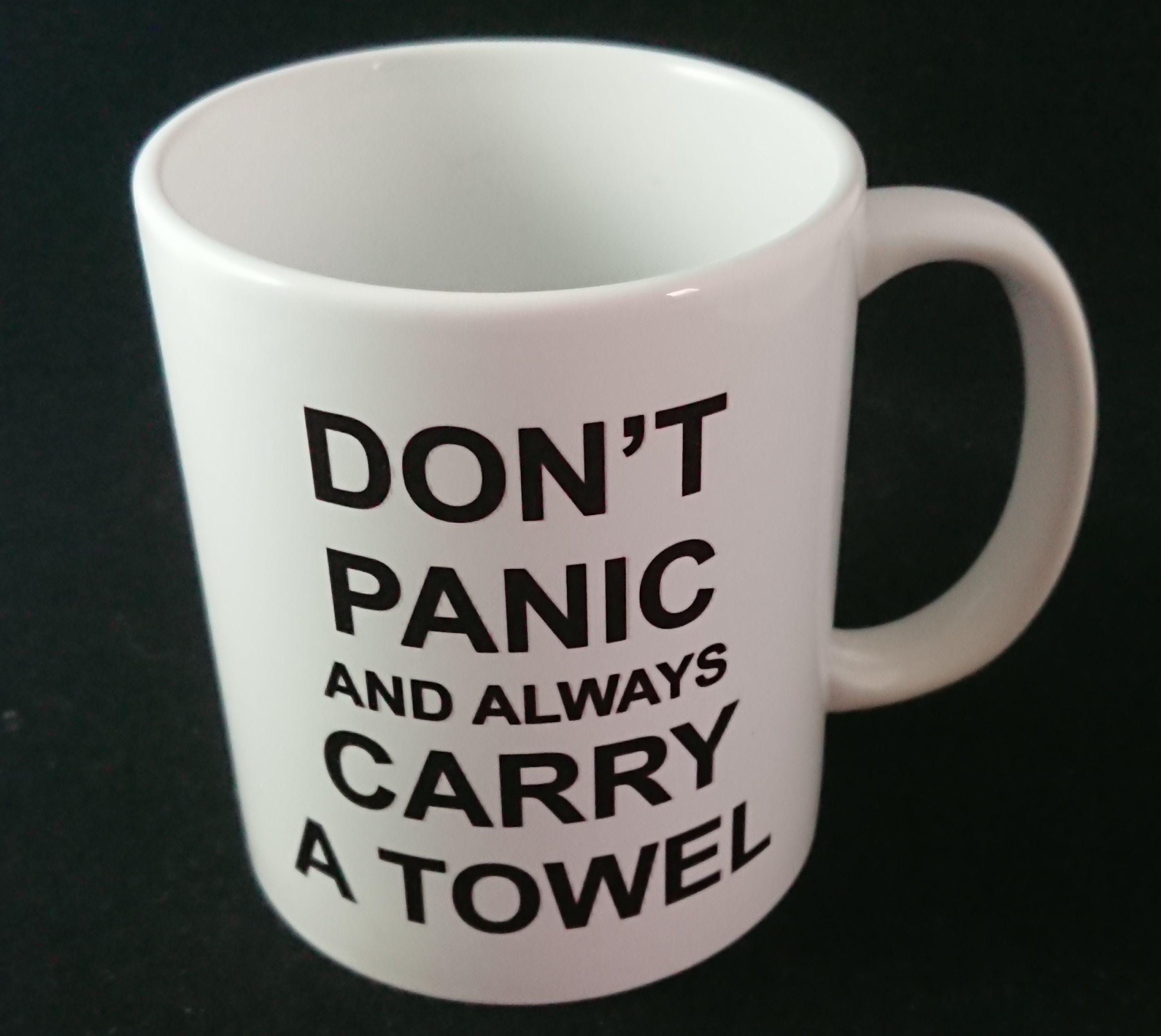 Want to be the coolest geek around? Then you need to get yourself one of these cool Hitchhikers Guide to the Galaxy mugs. Only those who know, will know; everyone else will just give you baffled looks. You can choose from one of 5 H2G2 related designs. These designs echo important moments in the books/film so choose from: Don't Panic, Don't Panic and always carry a towel, Always Carry a towel, So long and thanks for all the fish, Magrathea logo. Made from AAA Grade porcelain these mugs have a beautiful finish and the unique, sublimated design will withstand multiple dishwasher cycles. The 11oz mugs have a large handle so even the most ham fisted geek can fit their digits round these mugs. Shipped in fully recyclable packaging and smash proof boxes it will arrive at your door in great condition. Dishwasher and microwave safe.