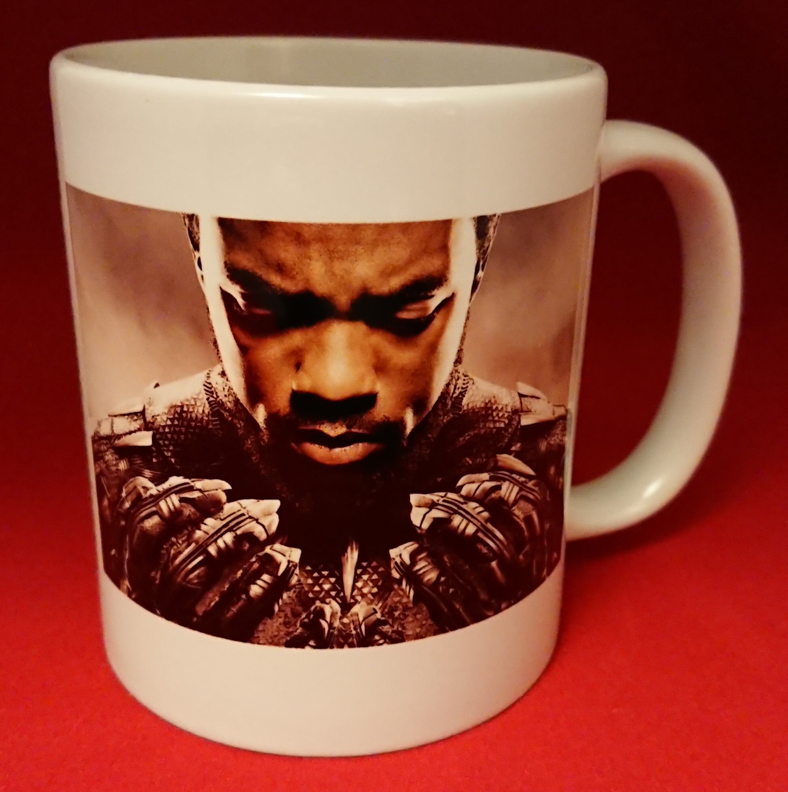 On one side it is written in the font designed for the film with a stylised Black Panther logo above it and on the other side it is written in the language that was developed for the film. Or choose the Chad Boseman celebratory mug with the picture of Black Panther himself on the other side.
